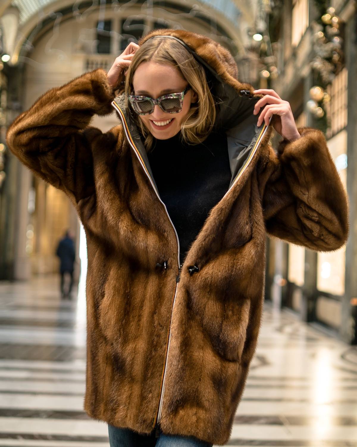 K-way modello Celine con interno in pelliccia di visone riciclato.