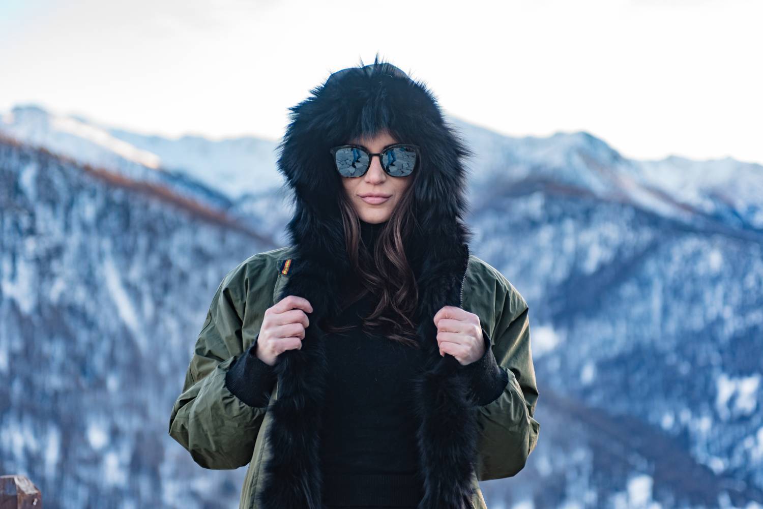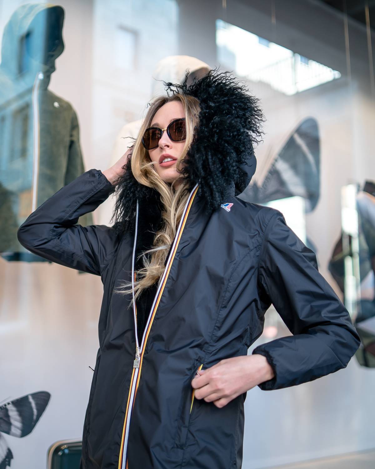 Super caldo, un “must have“ K-way modello “Remix Claudette Parka“ con interno in pelliccia di volpe nera.