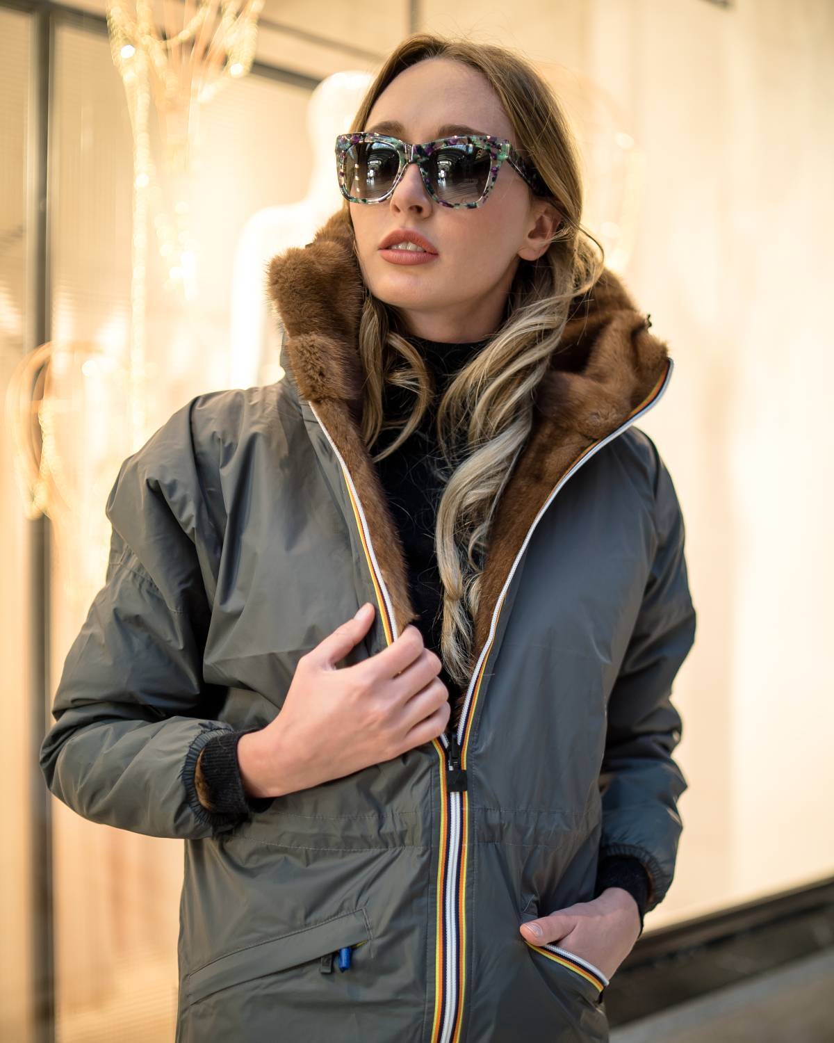 K-way modello “Virginie“ colore beige reversibile con pelliccia di visone naturale riciclata.