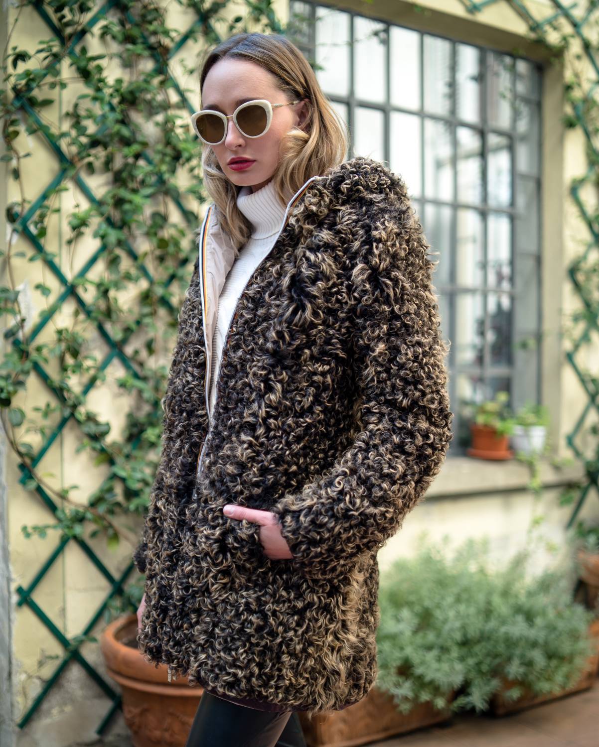 K-Way modello Virginie, reversibile con la pelliccia di kalgan riciclata.