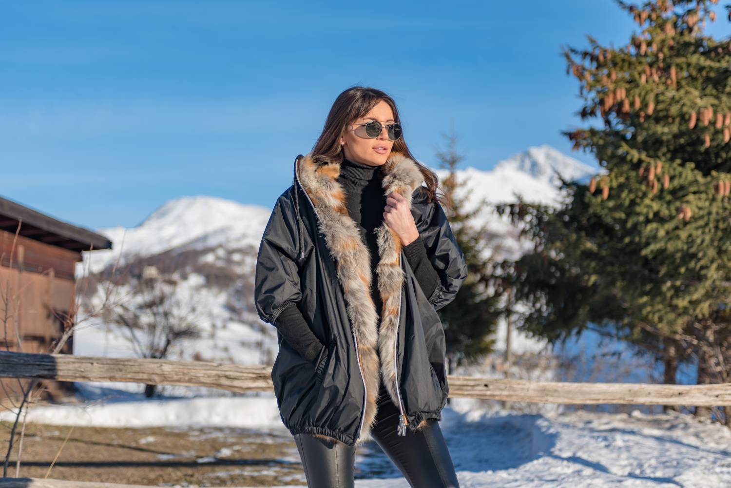 K-way modello Claudette con interno in pelliccia di Lapin, bordo cappuccio in volpe.