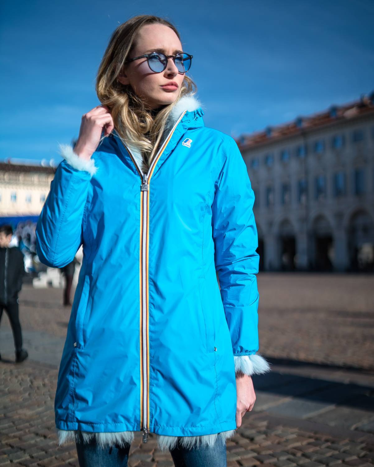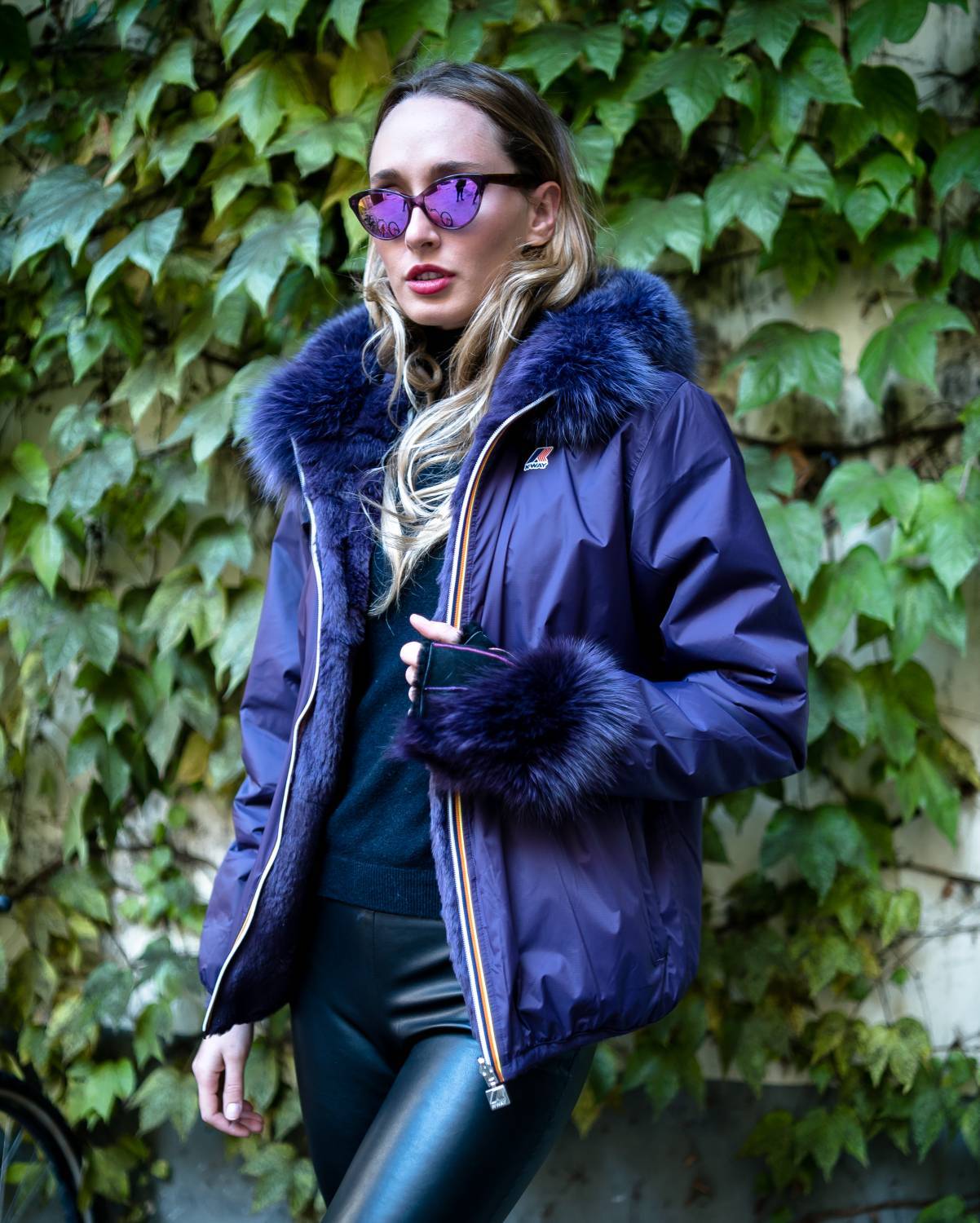 K-way modello Virginie reversibile con la pelliccia di volpe azzurra.